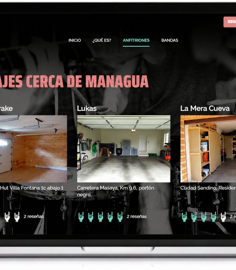 We launched ningunabandasingarage.com, an Airbnb-style platform built for the local rock scene. It connects garage owners with bands in need, allowing hosts to list their empty spaces and musicians to book their next rehearsal spot.